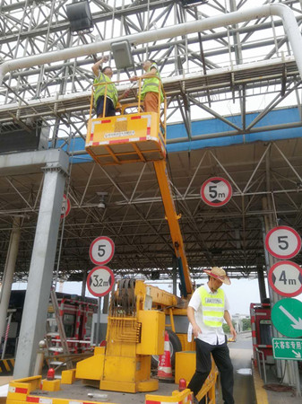 圖為工作人員對天線聯(lián)調(diào)測試 8日9日中午1點30左右,正是一天中最熱的時間,天線廠家?guī)еO(shè)備來到收費所,中心人員便放棄午休時間和早已在外廣場待命登高車駕駛員一起,協(xié)助廠家技術(shù)人員更換離地面6米余高的RSU天線盒。由于天線盒上方?jīng)]有安裝任何遮擋設(shè)備,長年日曬雨淋導(dǎo)致上方固定螺栓都出現(xiàn)生銹打滑,拆卸難度徒增,不到十分鐘,我們工作人員便濕透了全身,但大家還是咬咬牙,為盡快恢復(fù)車道正常行駛,保證車道便捷暢通而繼續(xù)埋頭苦干。在經(jīng)過近一個小時努力,終于將新的天線盒成功安裝,最后經(jīng)過聯(lián)調(diào)測試,恢復(fù)了車輛正常讀卡。 通過對新天線盒“上任”后數(shù)天觀察,發(fā)現(xiàn)該ETC車道讀卡失敗率明顯下降,車輛通過率達到了99.7%。如此一來,大大提高了車輛通行效率,距打造“智慧高速”目標又邁進了一步。