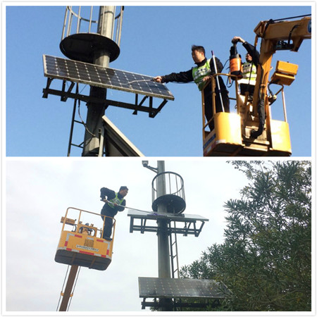 12月12日,集團(tuán)工程養(yǎng)護(hù)部機(jī)電設(shè)備維養(yǎng)中心主任助理葉俊及中心幾名隊(duì)員,站在凳高車上,頂著寒風(fēng),利用事先準(zhǔn)備的手動(dòng)洗車水槍、拖布等清潔工具對(duì)公司路面攝像頭太陽(yáng)能板進(jìn)行一一清洗,使原先布滿污垢的面板立刻變得光亮如新。 集團(tuán)沿線共有40多塊太陽(yáng)能板。近日,維養(yǎng)中心在設(shè)備巡檢中發(fā)現(xiàn)路面攝像頭太陽(yáng)能板普遍存在充電電流不足的現(xiàn)象,致使電瓶無(wú)法完全充電,一到陰雨天氣或晚上就不能保障攝像頭正常運(yùn)轉(zhuǎn)。這些太陽(yáng)能板由于使用年限久(基本都在10年以上),部分面板晶片已出現(xiàn)老化破損,加上冬季日照時(shí)間短、強(qiáng)度低等自然因素影響,導(dǎo)致設(shè)備無(wú)法有效運(yùn)轉(zhuǎn),但如果全部更換不僅成本高,而且費(fèi)時(shí)又費(fèi)力。