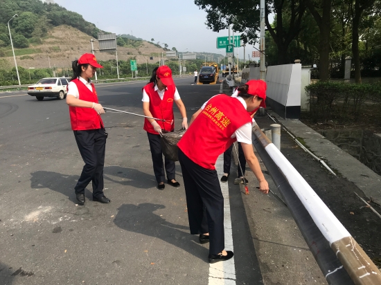 圖為志愿活動現(xiàn)場 “這邊有可樂瓶、邊溝上有塑料罐。” 另一邊由吳偉麗、周戰(zhàn)帶隊的一行女同志,對收費所周邊互通匝道、及沿線綠化帶等區(qū)域進行清撿。不好夾就用手撿、拾不起來就用手摳。大家發(fā)揚不怕苦、不怕累、不怕臟的精神,一路走走停停,將收費區(qū)域、綠化帶的塑料袋、紙巾、煙蒂等垃圾及邊溝的淤泥都被清理得干干凈凈,使得周邊區(qū)域環(huán)境煥然一新。 此次活動,大家不畏艱苦,冒著炎炎烈日,對路面垃圾清理、倒樹處理、物資搬運等工作積極奮戰(zhàn)。經(jīng)過一個上午的通力合作,所內(nèi)及周邊環(huán)境大為改觀。 臨海南收費所黨員們真正做到“平常時候看得出,關(guān)鍵時刻站得出”,以共產(chǎn)黨員的模范行動,挺身在前,將災(zāi)后恢復(fù)工作各項措施落到實處。 陳瑩