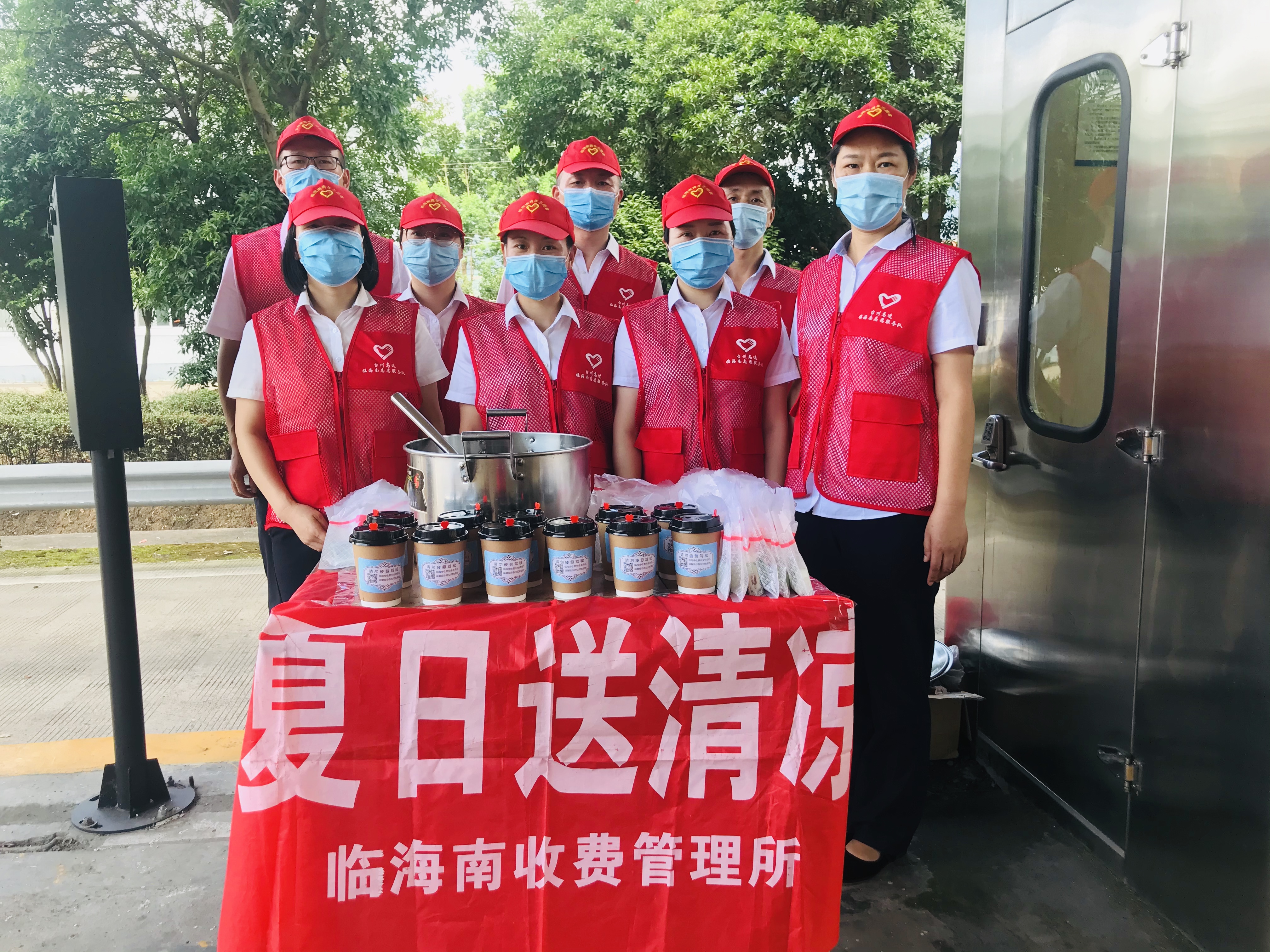 一份清涼 一份關(guān)切 ——臨海南收費(fèi)所組織開展“送清涼”活動(dòng) 7月29日中午,臨海南收費(fèi)所組織開展“夏日送清涼活動(dòng)”,給酷暑中的司乘朋友們送去絲絲涼意。 該所員工統(tǒng)一身著紅馬甲,在崗?fù)さ陌踩珝u上,搭起臨時(shí)愛心服務(wù)臺(tái),抬出食堂提前燒好的綠豆湯,還準(zhǔn)備了禮品袋、風(fēng)油精、人丹等降溫祛暑應(yīng)急物品。