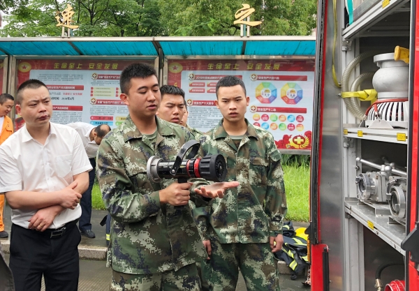 圖為培訓現場 活動現場,黃巖消防大隊官兵向參加活動的員工展示消防車上的消防裝備實物,講解裝備使用功能以及消防車基本構造,耐心地解答員工提出的問題,并當場進行專業的消防水帶連接滅火演示。之后,臺州收費所員工開展消防水帶連接滅火演練,獲得黃巖消防大隊官兵的肯定,同時針對演練中存在的問題及不足給出專業性的指導意見。