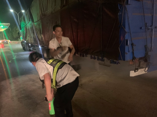 貨車起火,收費(fèi)員齊力撲滅 |