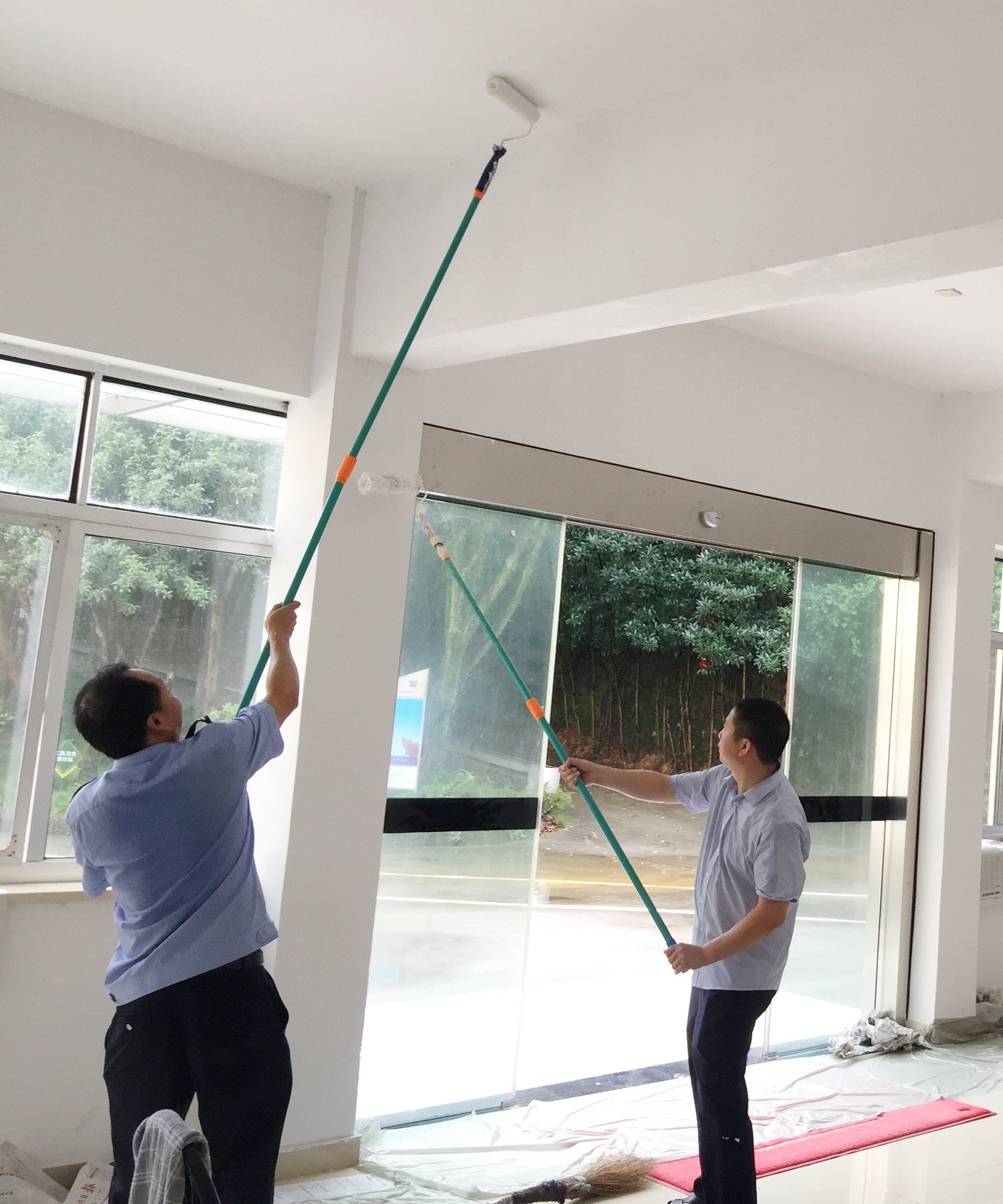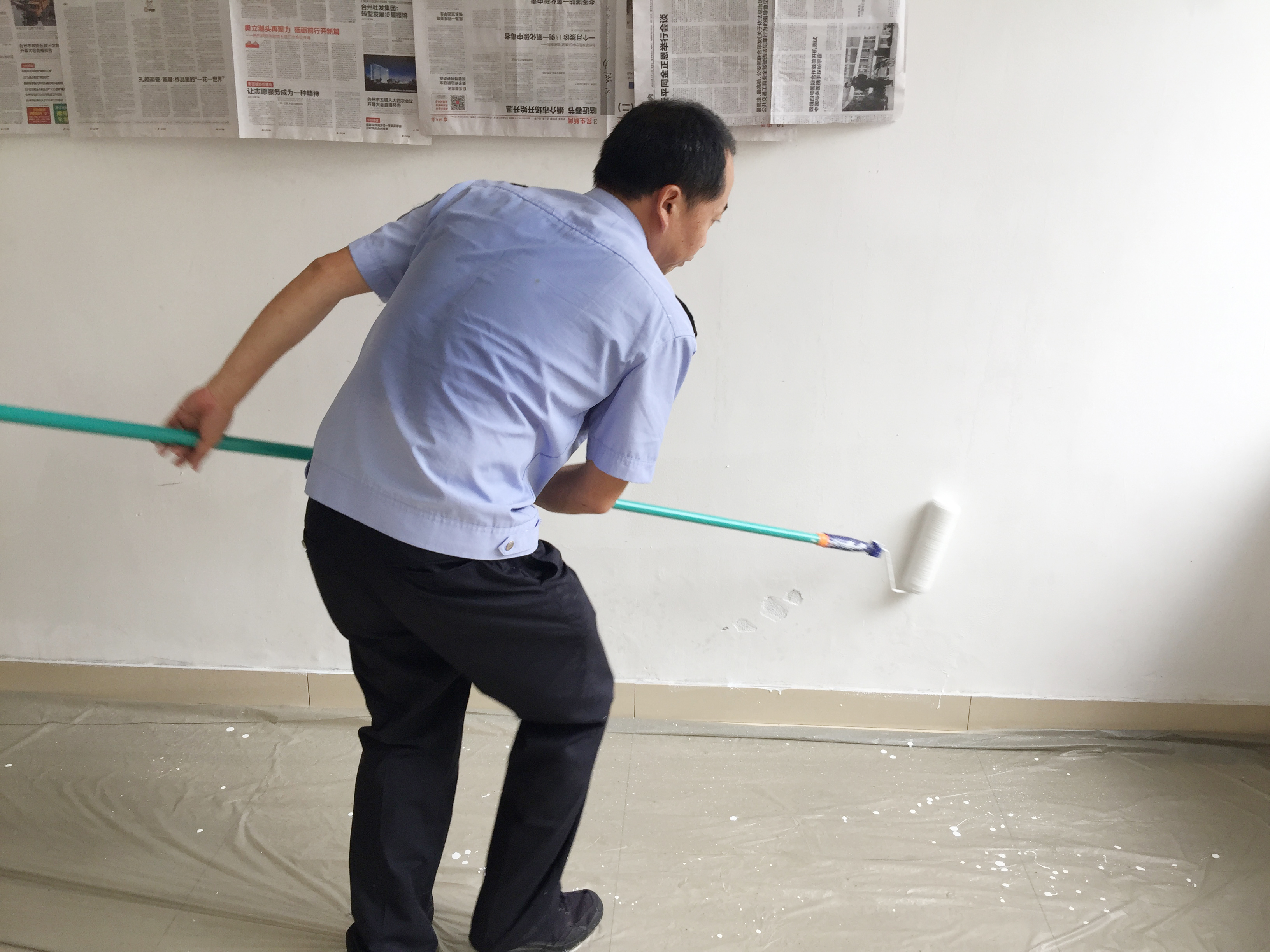 圖為“粉刷匠”粉刷現(xiàn)場(chǎng) 現(xiàn)場(chǎng),工具備齊后,大家捋起袖子開(kāi)始動(dòng)工。家里正在裝修的林通,有著豐富的粉刷經(jīng)驗(yàn),指導(dǎo)大家如何將墻體粉刷得平整又美觀。分工明確后,有的拿起粉刷棒,有的攪拌涂料,有的鋪墊報(bào)紙及塑料紙,有的清理刷墻后殘留在地面的垃圾。整個(gè)勞動(dòng)過(guò)程中,各個(gè)動(dòng)作麻利,干勁十足。粉刷是個(gè)技術(shù)活,更是個(gè)力氣活,只見(jiàn)浸滿涂料的刷子在墻上揮舞著,個(gè)個(gè)汗如雨下,卻都顧不得休息,在大家的齊心協(xié)力下,原本一片灰不溜湫的墻壁變得雪白光潔。 這次義務(wù)勞動(dòng),不僅美化了站所環(huán)境,營(yíng)造出廉潔的工作氛圍,增強(qiáng)了員工的凝聚力和向心力,更增加了全體員工對(duì)公司的一份熱愛(ài)。 林玲