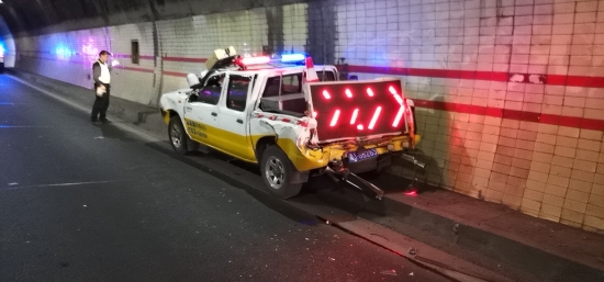 圖為事故車輛 憑著多年積累下來的經驗,洪瑞立刻判斷該車肯定存在異常情況,趕緊使用巡邏車內的廣播反復呼叫,提醒貨車靠邊停車檢查,并將此情況反饋到中控室。然而貨車并未停下,為了確保貨車的安全,巡邏車開啟警示燈,拉起警報,給該車預警。 當車行駛到馬鬃嶺隧道時,執(zhí)勤隊員從后視鏡發(fā)現(xiàn)后方有另一輛大貨車正快速逼近,沒有任何減速的傾向。這一刻,留給他們的只有兩個選擇:往左拐,時間緊張,一個處置不當,會出現(xiàn)尾部被撞后再次追尾前方貨車的前后夾擊險情,后果不堪設想;或者在被撞時的一瞬間采取正確的應對措施,在操作時絕不能有一丁點的遲疑,逃生的時機僅有幾秒鐘。 生死存亡的緊急關頭,隊員們及其冷靜,被猛烈撞擊時,沒有急踩剎車、誤打方向,在左側車道有車的情況下,處置正確、分毫不差,往右車道偏移了10來米,成功從夾縫中逃脫,化解了這次險情。巡邏車被撞后,兩名受傷隊員不顧傷痛,仍然堅持下車保護現(xiàn)場并對來往車輛預警,預防二次事故的發(fā)生,直到后續(xù)救援力量到達。 此次事故造成三車追尾,兩名執(zhí)勤隊員輕微受傷,雖然巡邏車損失慘重,但是因為執(zhí)勤隊員高度的工作責任心和對險情的正確判斷處置,才未造成任何司乘人員的傷亡,也未影響到隧道正常通行。 據隧道所員工了解,該貨車司機可能是凌晨疲勞駕駛沒有聽見巡邏車預警,在此提醒廣大司機,車輛如果發(fā)生故障,車靠邊、人撤離,即報警,切忌疲勞駕駛! 盧祖理
