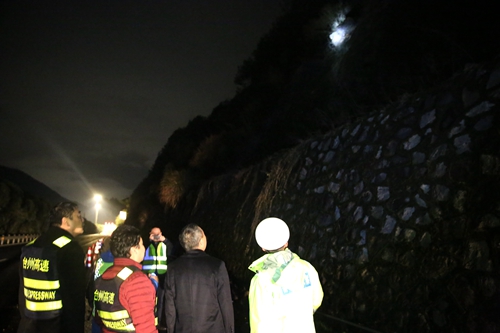張建平與高速交警、施工單位等相關人員仔細勘踏險情現(xiàn)場,連夜會商制定解決高邊坡落石臺上的巨石方案。由于深夜天黑,高邊坡坡度較高,沒有直接供人上坡的道路,夜間施工存在較大困難且易造成人身危險,只能安排人員緊盯現(xiàn)場通宵觀察情況,隨時匯報險情進展,等天一亮立即清理二級平臺上的大落石。張建平特別叮囑相關部門負責人,近期雨水還將持續(xù)一段時間,容易造成塌方等自然災害的發(fā)生,一定要組織人員再次對高速全線高邊坡開展隱患大排查。