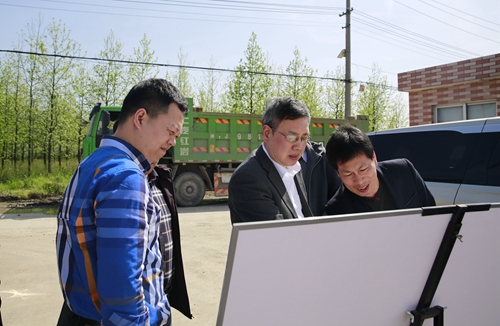 圖為公司領導陳文波在水花村考察停車區地塊