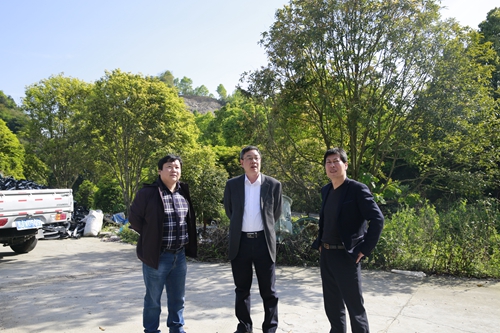 圖為公司領導陳文波在岙林村考察停車區地塊