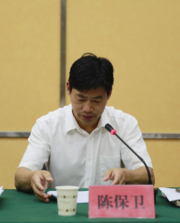 圖為集團(tuán)副總經(jīng)理陳保衛(wèi)主持會(huì)議