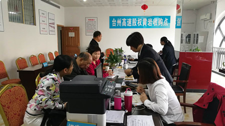 臺(tái)州高速集團(tuán)利用市、縣報(bào)社、電視等各大媒體和集團(tuán)網(wǎng)站、微信等媒介,運(yùn)用公交車(chē)、公告欄等,連續(xù)刊播股權(quán)收購(gòu)公告,多輪次電話、短信通知到每位股東,一再分析闡明股權(quán)轉(zhuǎn)讓的意義、重要性和必要性,明確告知股權(quán)收購(gòu)時(shí)間和上市的可能性。高速股權(quán)各收購(gòu)點(diǎn)合法規(guī)范簡(jiǎn)化轉(zhuǎn)讓程序,工作人員熱情細(xì)致,服務(wù)周到,業(yè)務(wù)熟悉,高效率辦事。設(shè)立流動(dòng)股權(quán)收購(gòu)點(diǎn),到臨海、溫嶺及股東人數(shù)集中的鄉(xiāng)鎮(zhèn)、單位上門(mén)辦理股權(quán)收購(gòu)手續(xù)。廣大股東踴躍轉(zhuǎn)讓,部分熱情的股東還幫助宣傳,幫助親戚朋友代辦轉(zhuǎn)讓手續(xù)。在國(guó)慶節(jié)后,迎來(lái)了股權(quán)轉(zhuǎn)讓小高潮,曾出現(xiàn)連續(xù)三天全市協(xié)議轉(zhuǎn)讓股權(quán)累計(jì)超過(guò)百萬(wàn)股的喜人成績(jī)。