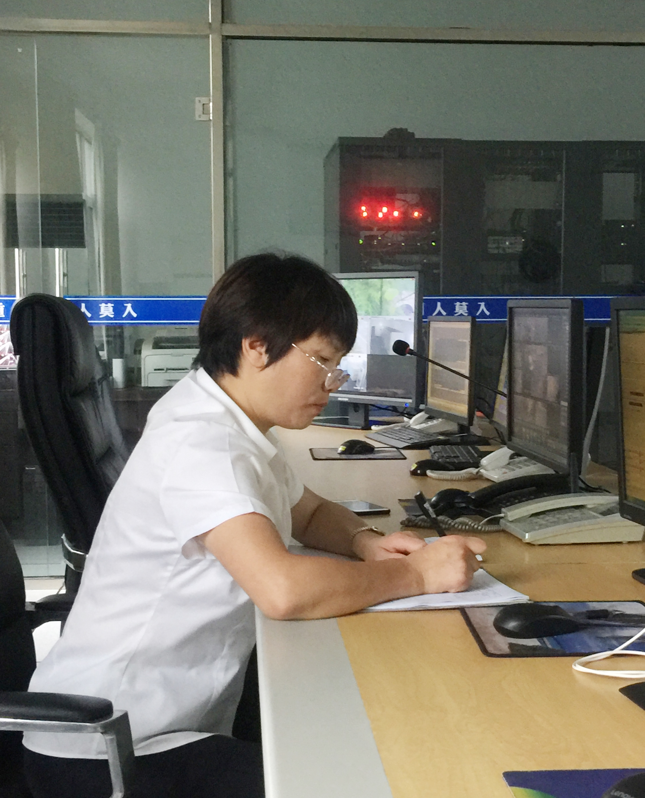 圖為交接班場景 開朗又樂觀,善于團結同事,幾乎是班隊“組織部隊”擔當的“開心果”,她就是三隊中控員金素彬。別看她平時嘻嘻哈哈大大咧咧,工作起來卻一板一眼,來不得半點馬虎。接班上崗時,只見她一手拿筆,架起老花鏡,認真做好中控交接班記錄,仔細檢查監視設備運轉情況,確保中控設備都能正常運行。中控室內,幀幀銀屏,一覽車流,幅幅畫面,縱觀隧道南北動向。7月6日下午4點47分,金素彬敏銳地發現一輛集裝箱拋錨在寧向隧道停車帶,一半車身掛在主車道上,車流如織呼嘯而過,情況十分危險。于是鏡頭切換、廣播呼叫、電話通報、更改信號燈、情報板、追蹤記錄……一切操作有條不紊、井然有序,如同久經沙場的指揮官。就這樣,她又一次通過熒屏和電話,排除安全隱患,保證了隧道的暢通。面對進入倒計時的退休日子,她感慨千萬:“十幾年的中控工作還真是舍不得,如果公司需要,我會義不容辭地留下為公司發展作貢獻。” 平凡的崗位,普通的中控員,他們為守護隧道的安全暢通奉獻出自己最美好的青春年華,他們默默堅守,日復一日地做著重復而單調的事,卻發揮著不平凡的作用。 柳媛 林玲