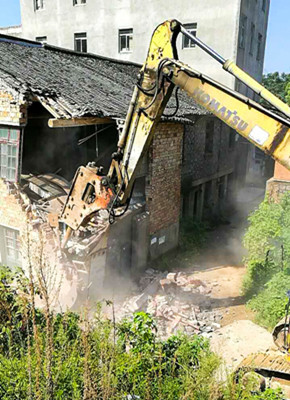 圖為炮頭機正在拆除民房